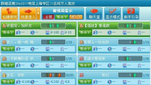 创建房间:进入专区后,用户可查看其他玩家创建的游戏板。点击“创建游戏”按钮启动房间设置流程。