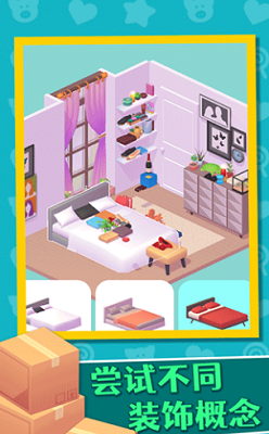 家居人生自由装修设计模拟是一款以房屋改造为核心玩法的创意休闲游戏,玩家将化身空间设计师,通过200余种家具与装饰物打造个性空间。从毛坯房到精装公寓的蜕变过程中,玩家可任意调整沙发组合角度,搭配不同色系的墙纸地毯,甚至能通过光影调节功能预览不同时段的采光效果。