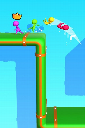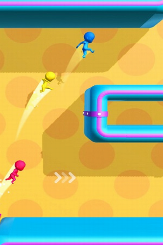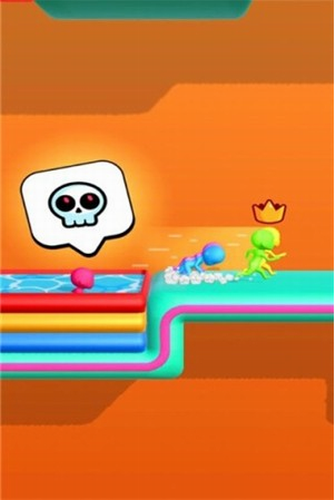 在三维立体赛道上,玩家通过划屏操作实现角色滑铲、弹墙跳等高阶动作,系统自动推进的跑酷节奏要求玩家必须在0.3秒内做出反应决策。每轮淘汰赛会实时显示剩余选手数量,决赛圈将开启动态障碍模式,随机刷新的火焰陷阱和移动平台极大提升操作上限。角色养成系统包含12种属性加成道具,通过赛事积累可永久提升跳跃距离或冲刺速度。