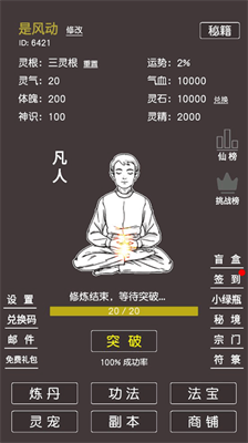 动态境界突破:引入天时地利系统,玩家可选择灵气充沛的洞府,配合特殊星象进行突破,显著提升大境界的成功概率。