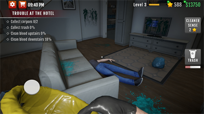 1、精密痕迹消除系统:从地板缝隙中的血渍到墙面残留的弹孔,每个场景包含超过200个可交互细节。玩家需运用紫外线探测仪定位潜藏证据,通过专业级清洁设备实现完全痕迹清除。