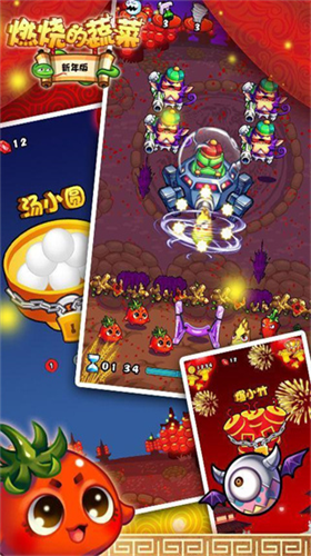 《燃烧的蔬菜新春特辑》作为融合策略与操作的弹射类塔防手游,近期迎来重大版本更新。游戏采用全新引擎优化视觉表现,角色建模精度提升200%,场景动态光影效果让飞龙山脉更具沉浸感。新增十二套节日主题外观,NPC身着限定服饰与玩家共度佳节,转动幸运轮盘更有机会获得稀有道具与限定装扮。