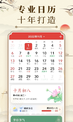 1、传统历法应用:详细标注特殊纪念日与传统文化节日,支持择吉查询与运势参考