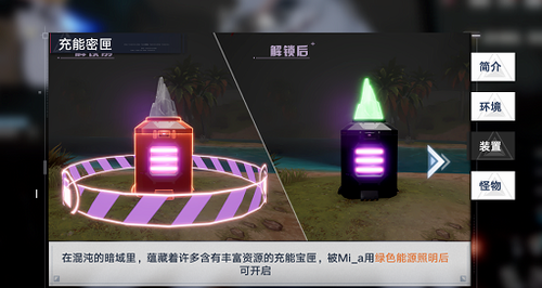 绿色照明设备可为充能密匣注入稳定能源,操作时需保持角色处于静止状态。当能量环呈现螺旋上升特效时,代表充能效率达到峰值,此时连续点击交互键可提升20%开启速度。