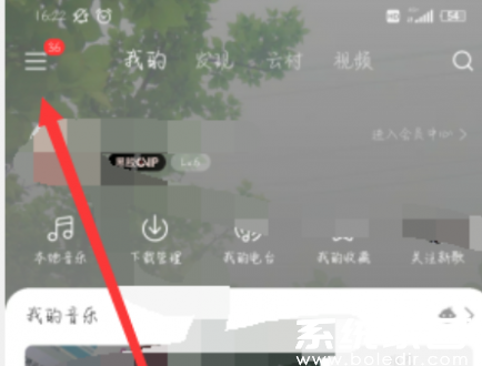 1、启动设备中的网易云音乐应用,进入主界面后轻触左上角「三」形菜单标识。该按钮位于播放控制栏上方,点击后侧边栏将展开系统功能选项。