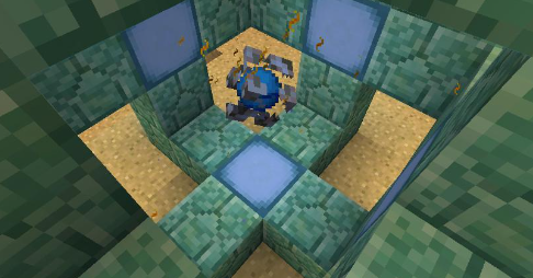 作为装饰元件,海洋之心散发出独特的幽蓝光效。其光线强度虽不及海晶灯,但动态水纹特效使其成为建造水下景观的首选材料,特别适合营造神秘氛围的宫殿建筑。