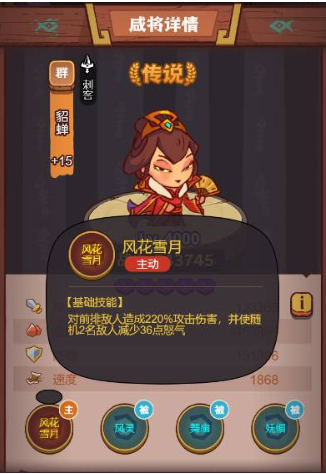 作为具有超高血量的特殊目标,貂蝉的主动技能具备双重威胁:对前排单位造成220%攻击倍率的直接伤害,并随机削减两名敌方单位36点怒气值。这种机制要求队伍需兼备爆发输出与持续作战能力,尤其在怒气管理方面需要特殊应对策略。