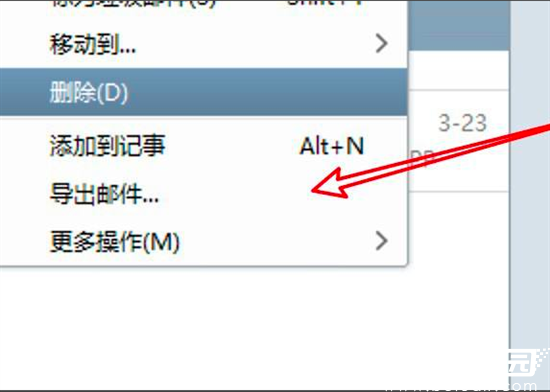 3. 右击目标邮件调出功能菜单,选择"导出邮件"选项