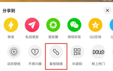 2. 在弹出的功能面板中,选择「复制链接」选项获取视频完整信息