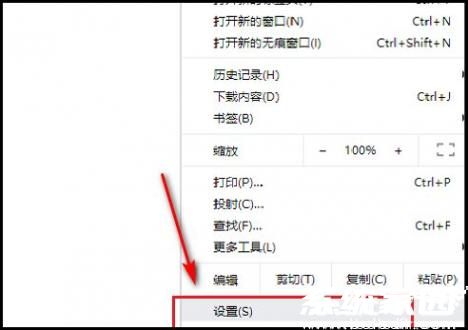 2、在展开的选项面板中选择「设置」模块,该入口可对浏览器的核心参数进行调整