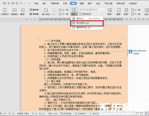 4、在弹出的二级菜单中选择"修订选项",这个入口往往容易被用户忽略。设置窗口包含批注、插入内容、删除内容等十余项视觉元素的个性化配置,其中批注颜色调整位于首选项位置。